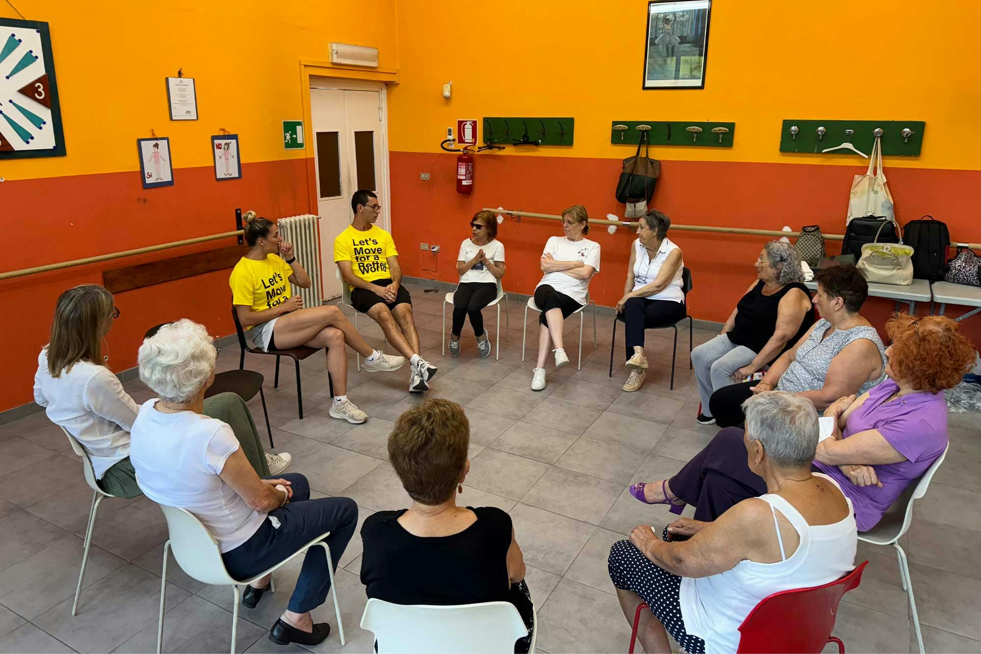 - una sessione di ginnastica dolce, con esercizi mirati al miglioramento della forza e dell’equilibrio;