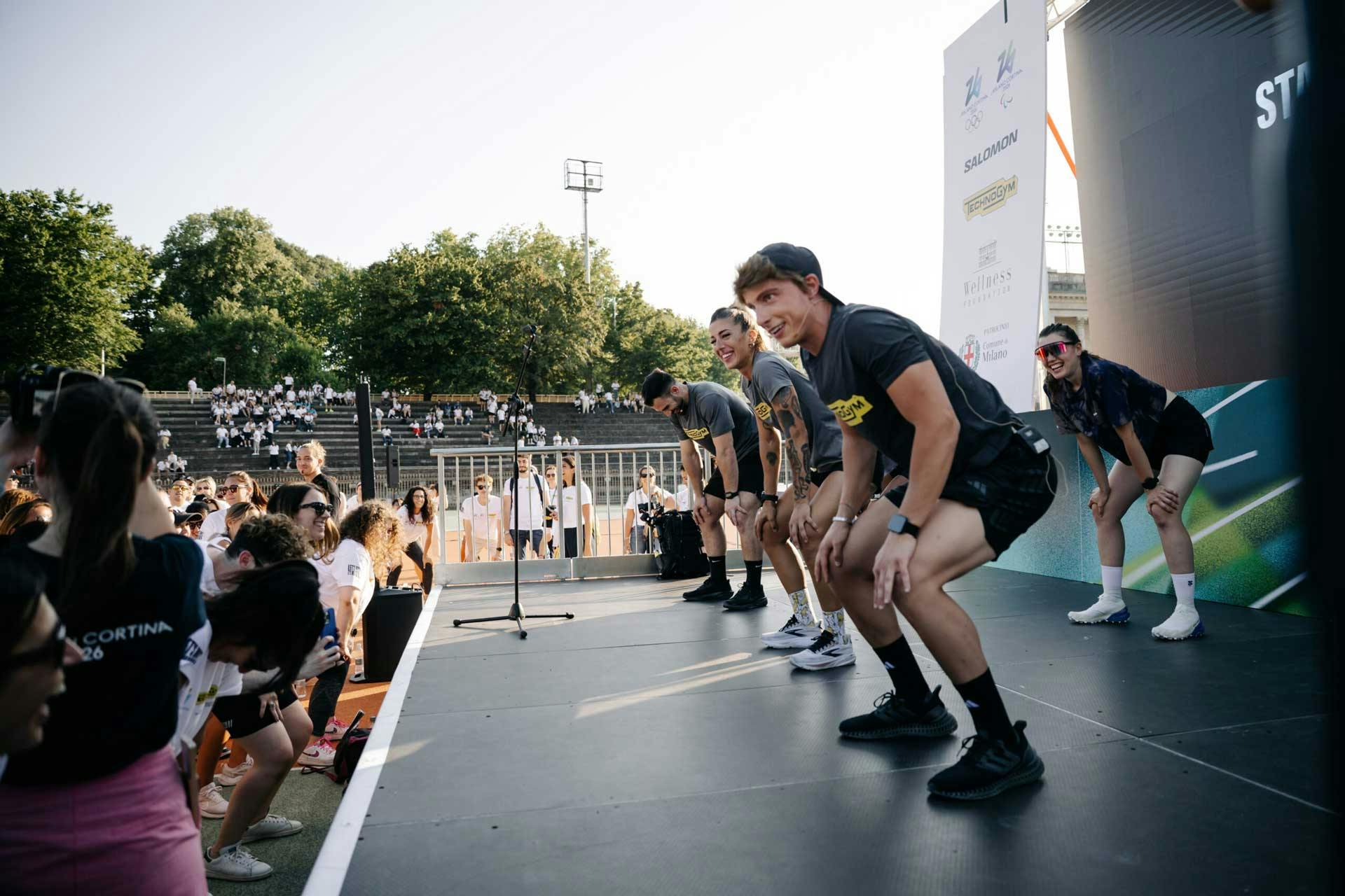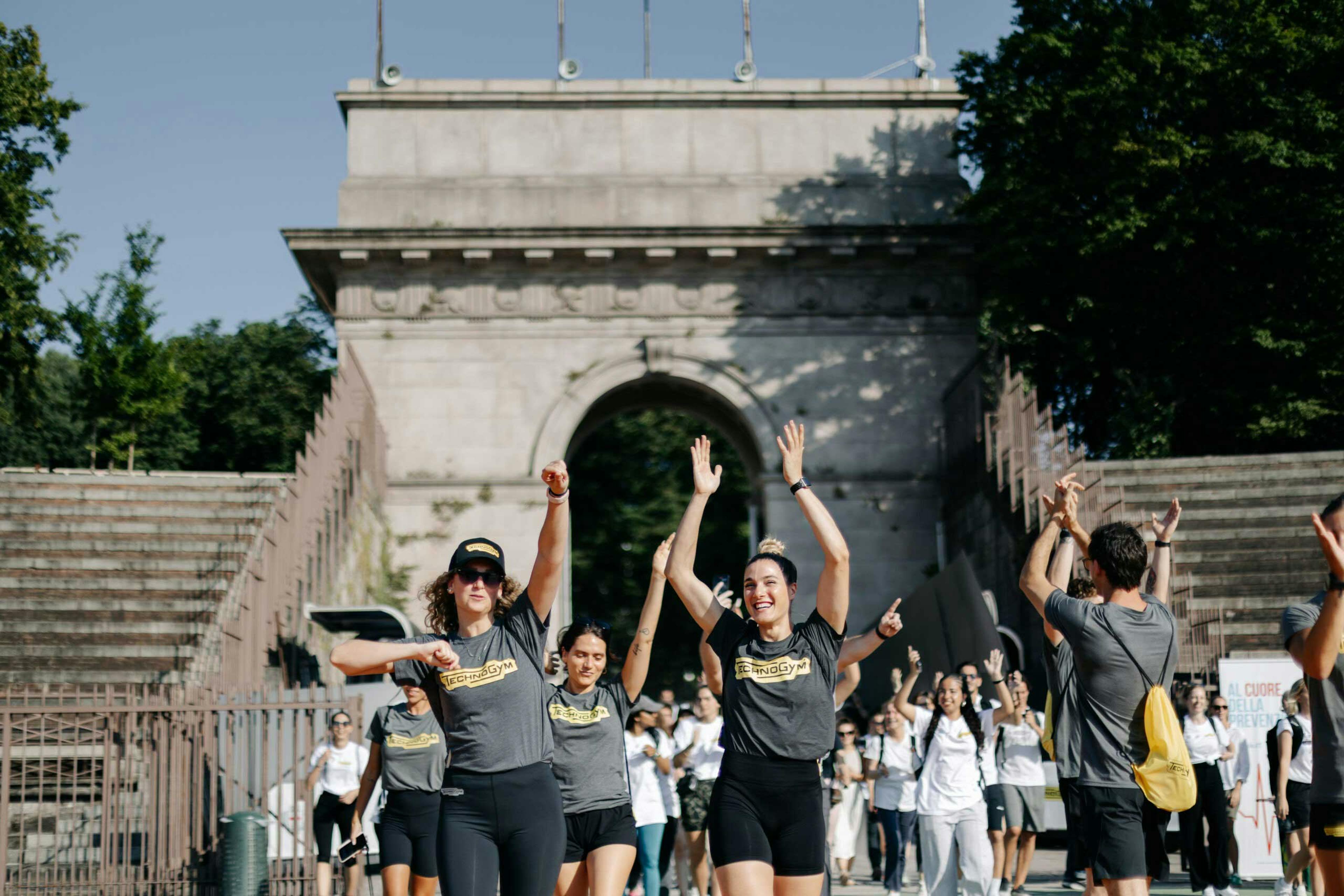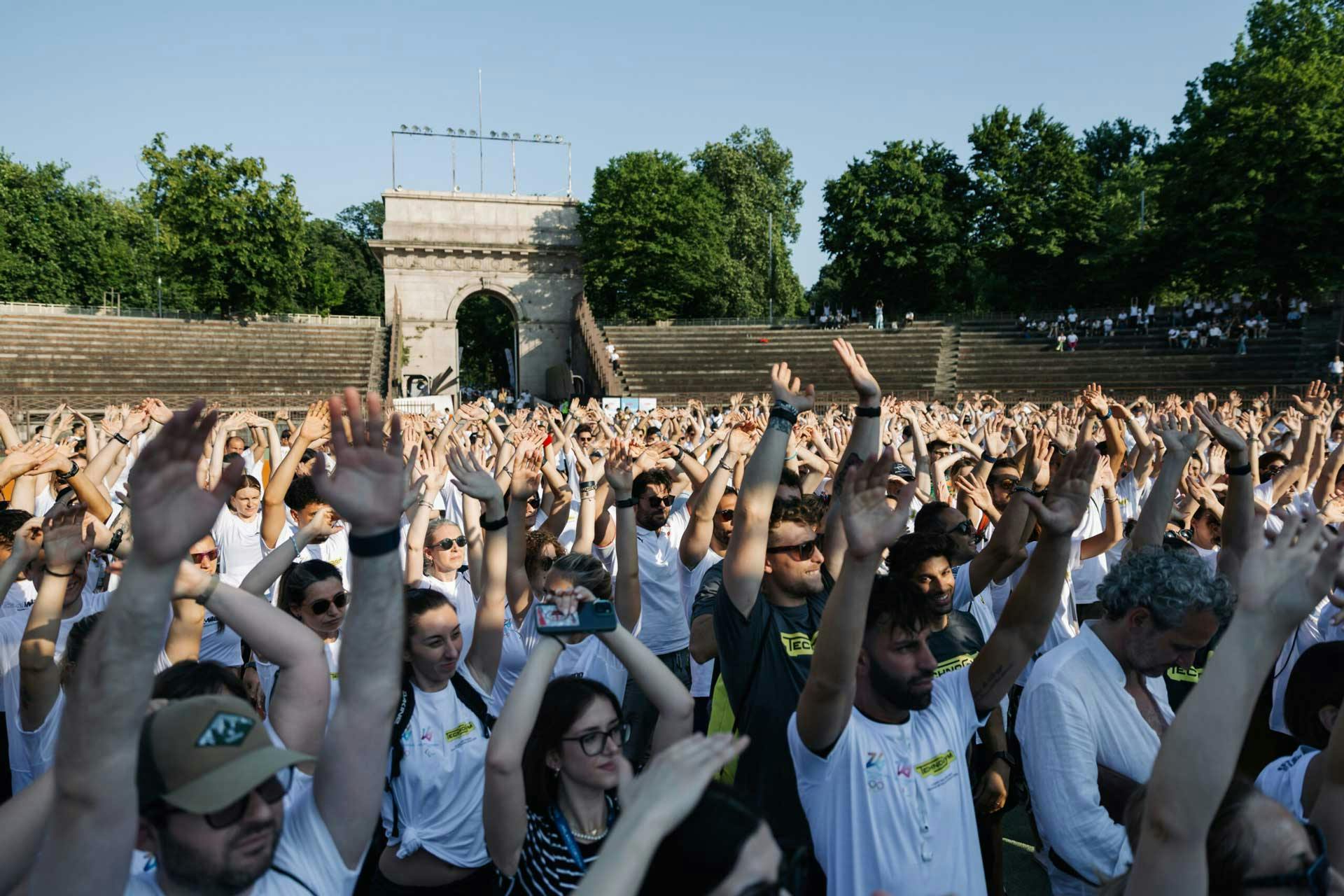 Nel tardo pomeriggio del 23 giugno, dipendenti e collaboratori di oltre 35 aziende aderenti si sono dati appuntamento in diversi punti della città di Milano – dalla Triennale di Milano al Salomon Store in Corso Garibaldi, passando per l’Arco della Pace – per unirsi in una grande camminata collettivaguidata da master trainer Technogym. La meta comune? L’Arena Civica, iconico spazio dello sport cittadino, dove si è tenuto il momento conclusivo della giornata, tra attivazioni speciali e interventi di atleti Olimpici e Paralimpici, con la conduzione da Michele Mainardi di Radio Deejay.